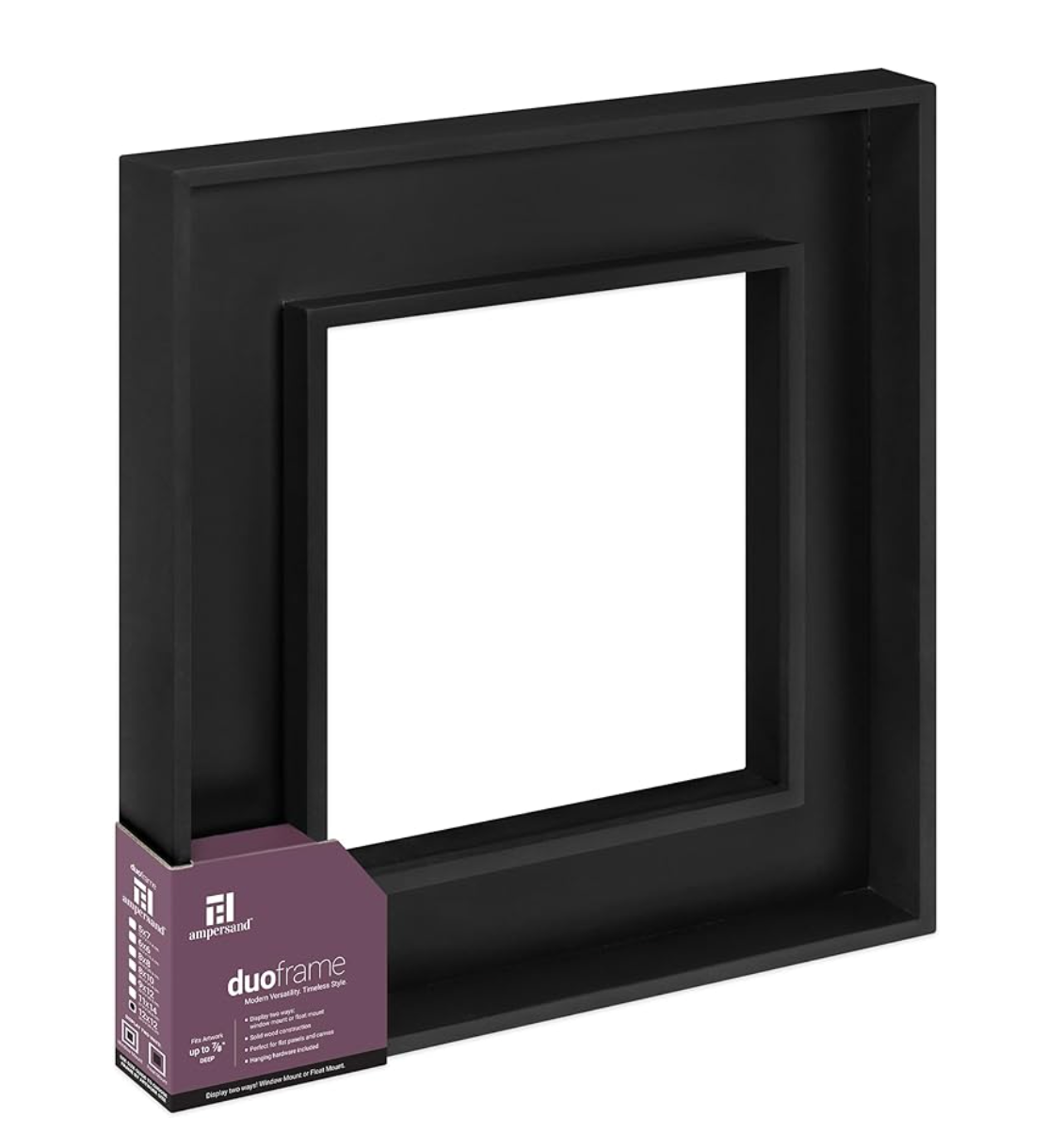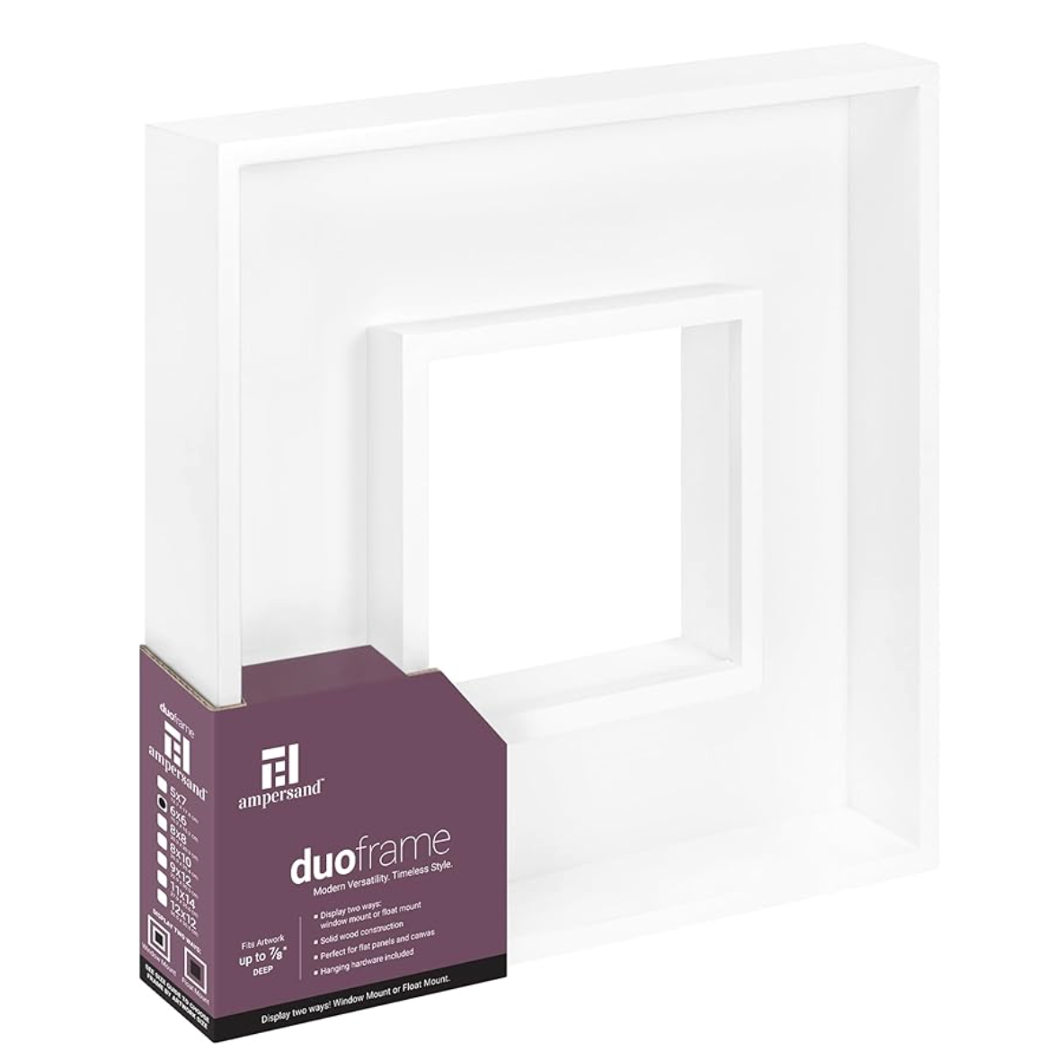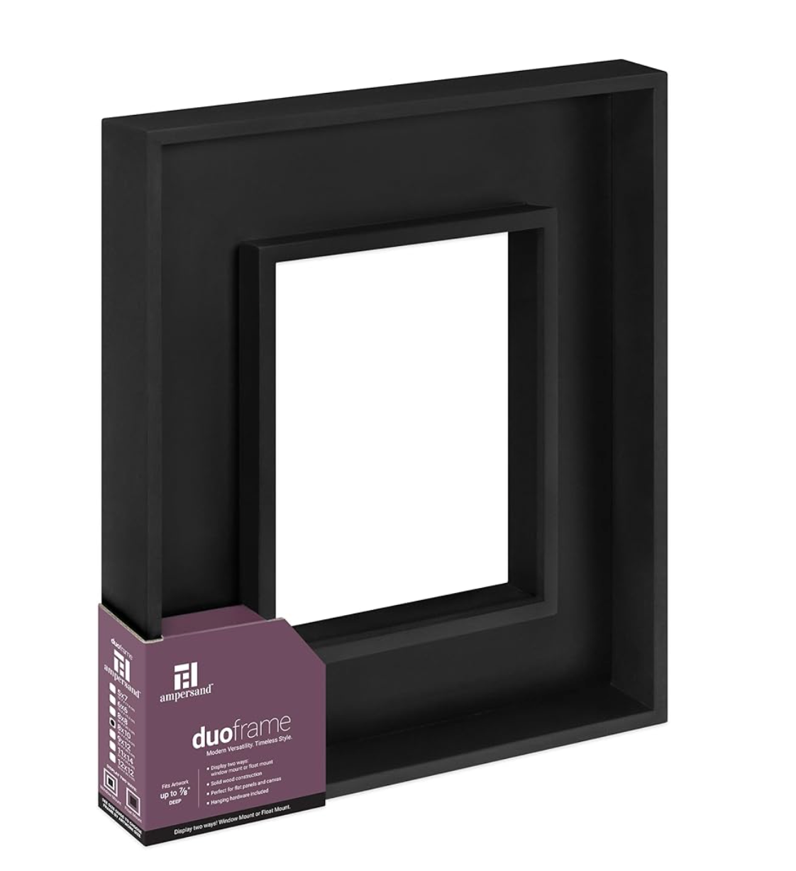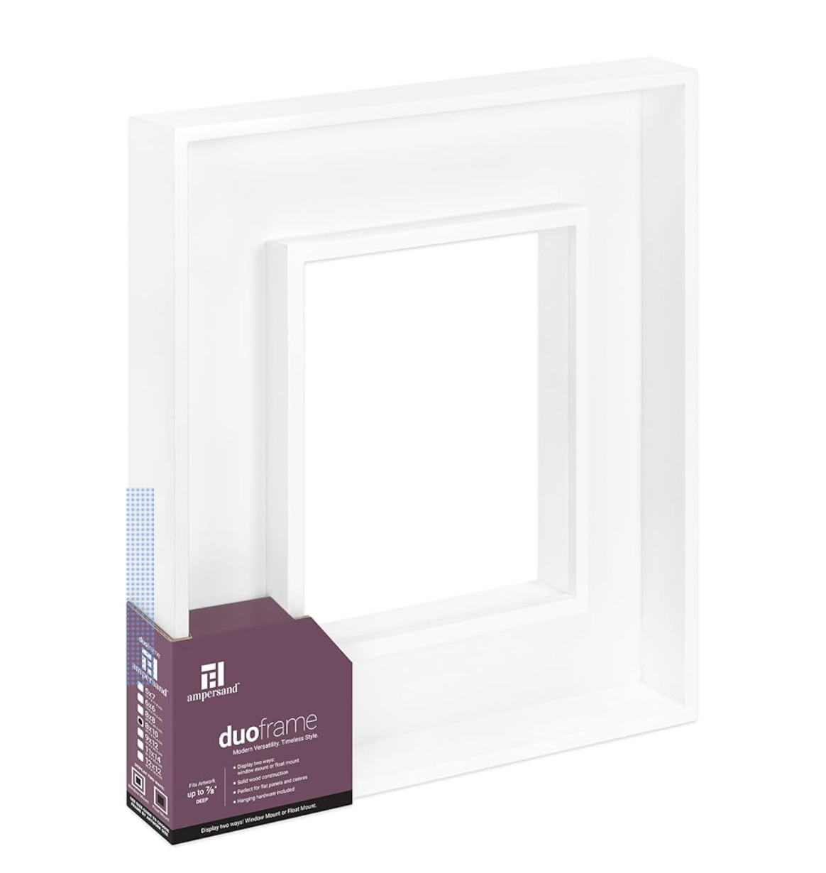 The Ampersand DuoFrame is a modern, versatile framing solution designed for cradled panels and canvases. Its unique design allows artwork to be mounted either recessed inside the inner frame or mounted on top of the inner frame to intentionally reveal the canvas or panel edges. Crafted from high-quality hardwood with a clean, contemporary finish, the DuoFrame adds depth and structure while giving artists flexibility in how their work is presented. Ideal for gallery display, professional exhibitions, or home installations, it offers both refinement and creative control.