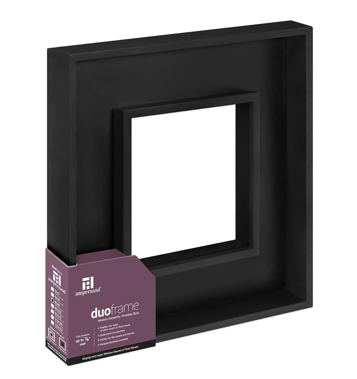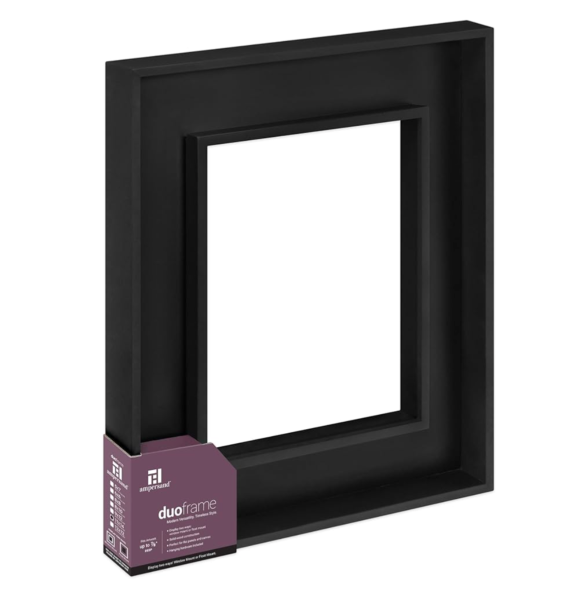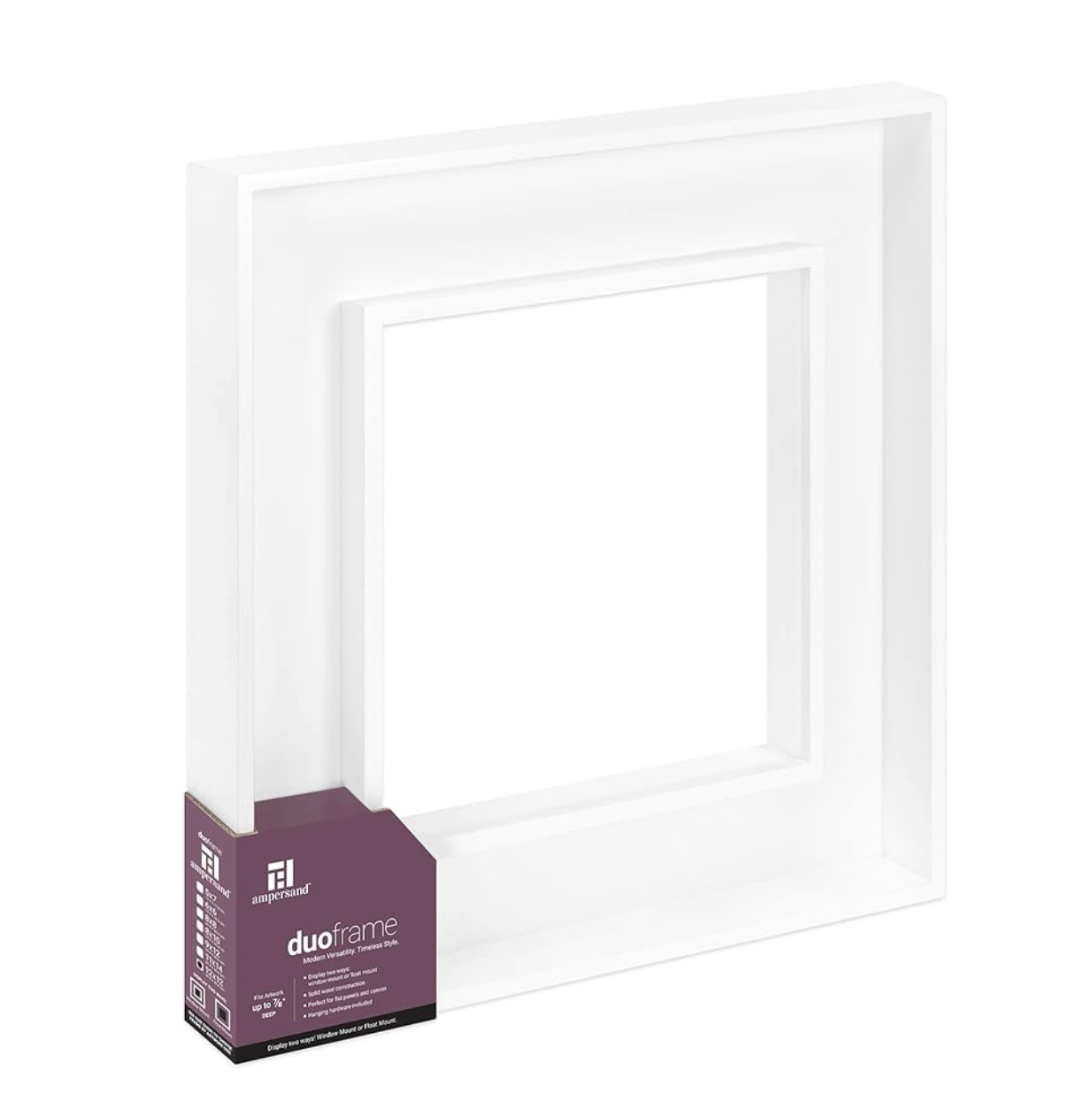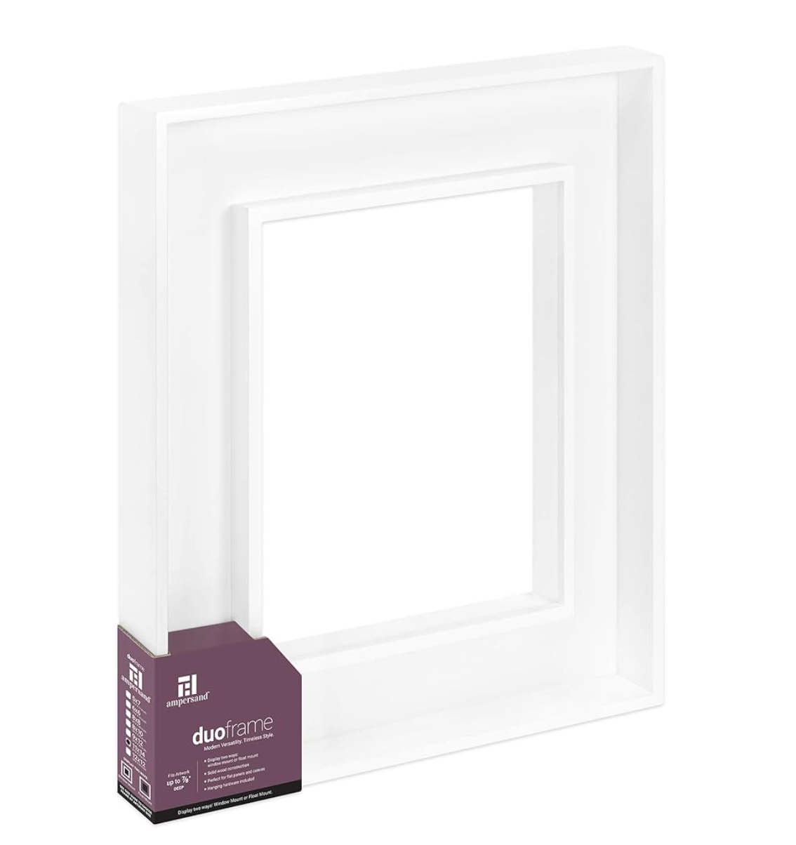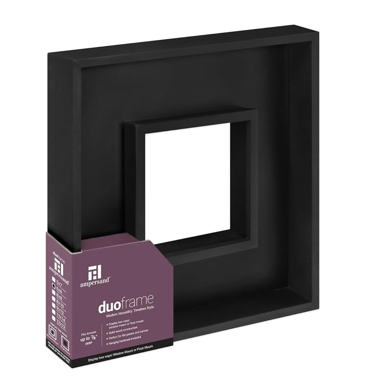 The Ampersand DuoFrame is a modern, versatile framing solution designed for cradled panels and canvases. Its unique design allows artwork to be mounted either recessed inside the inner frame or mounted on top of the inner frame to intentionally reveal the canvas or panel edges. Crafted from high-quality hardwood with a clean, contemporary finish, the DuoFrame adds depth and structure while giving artists flexibility in how their work is presented. Ideal for gallery display, professional exhibitions, or home installations, it offers both refinement and creative control.