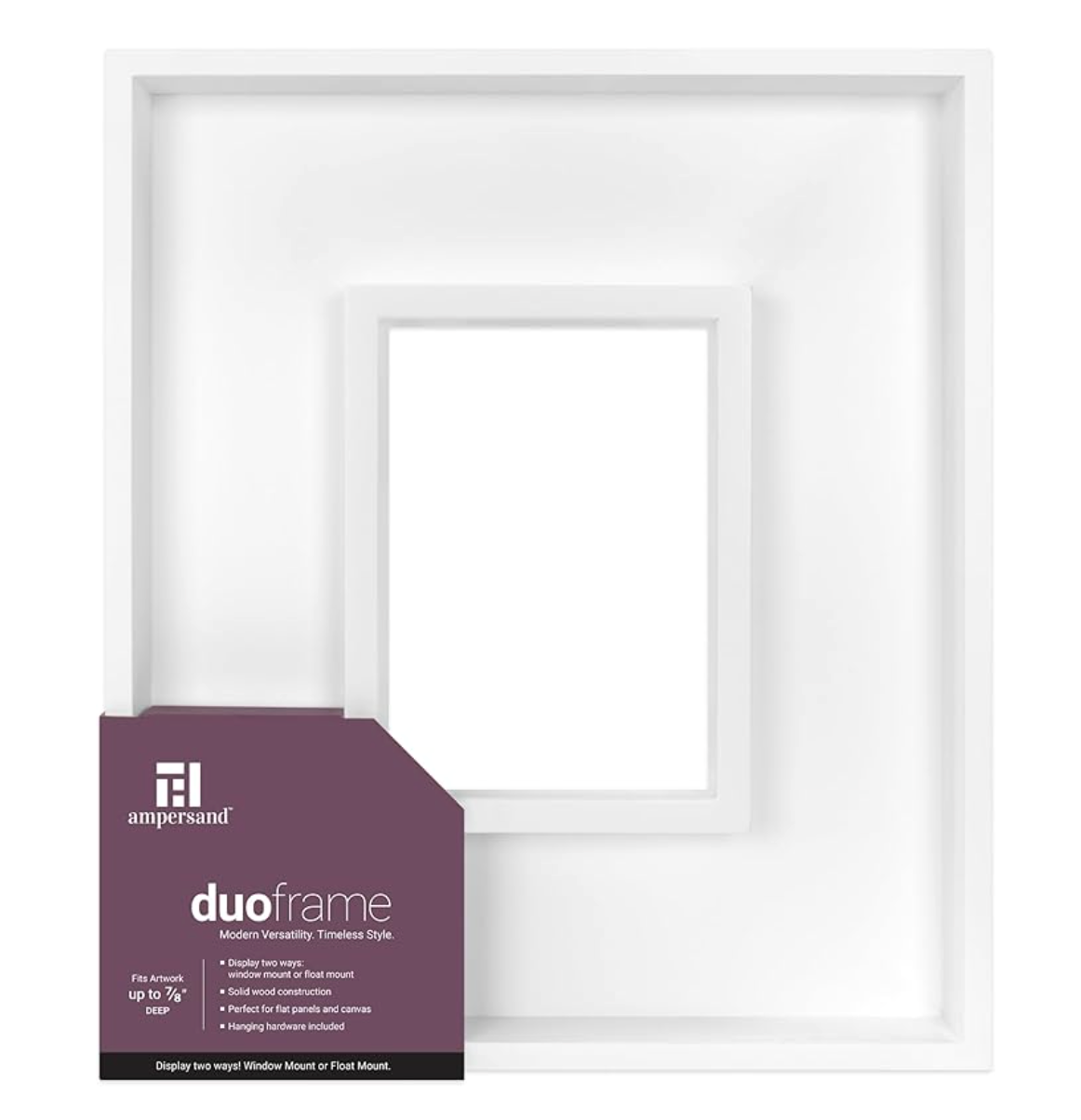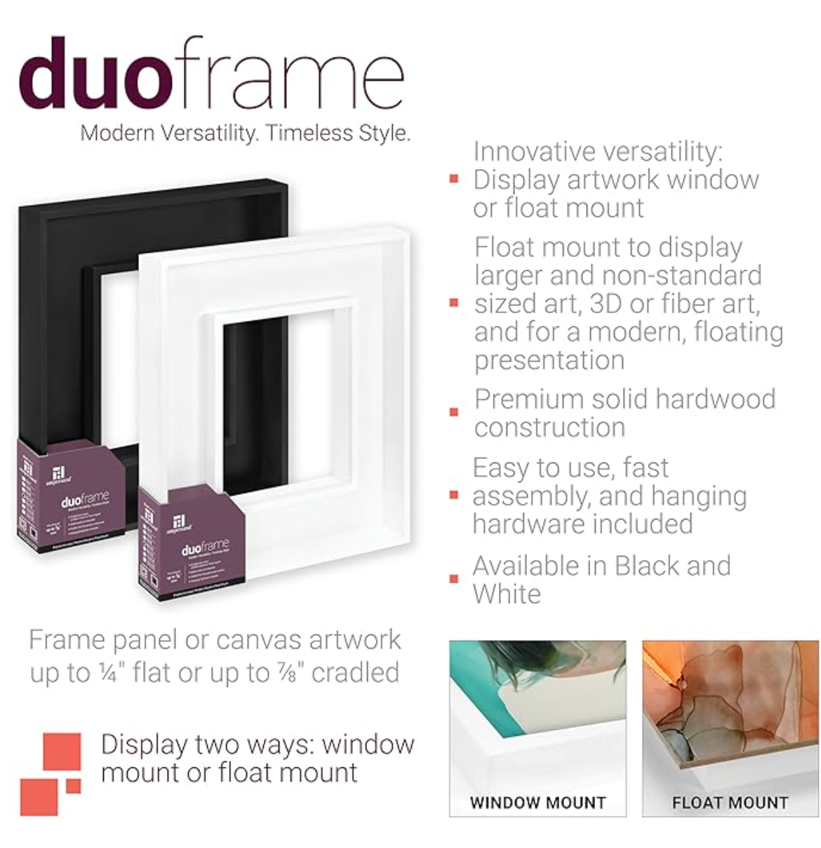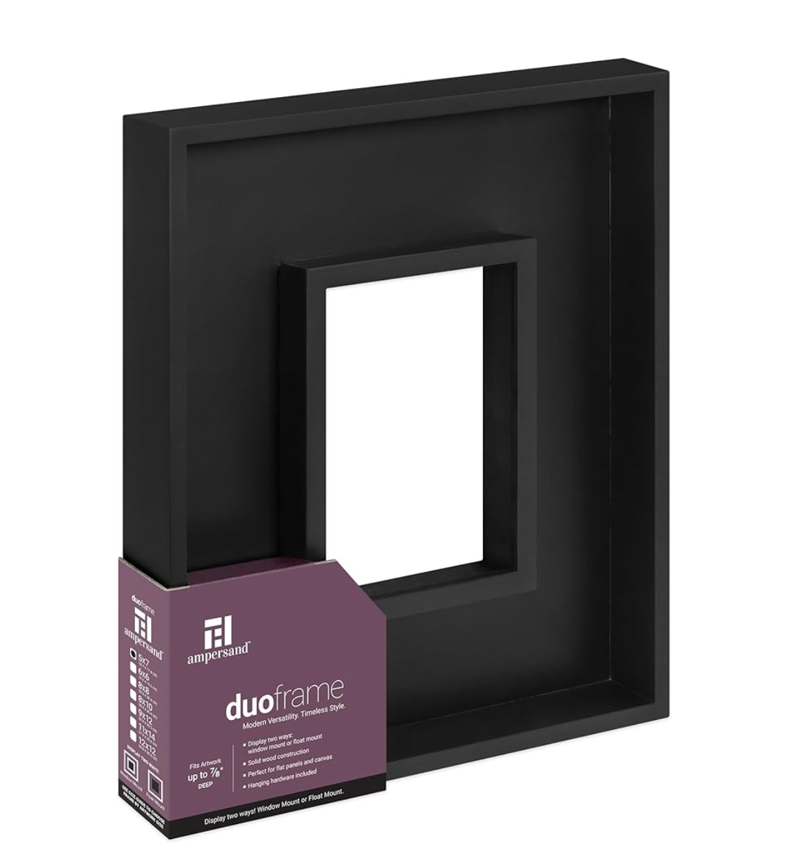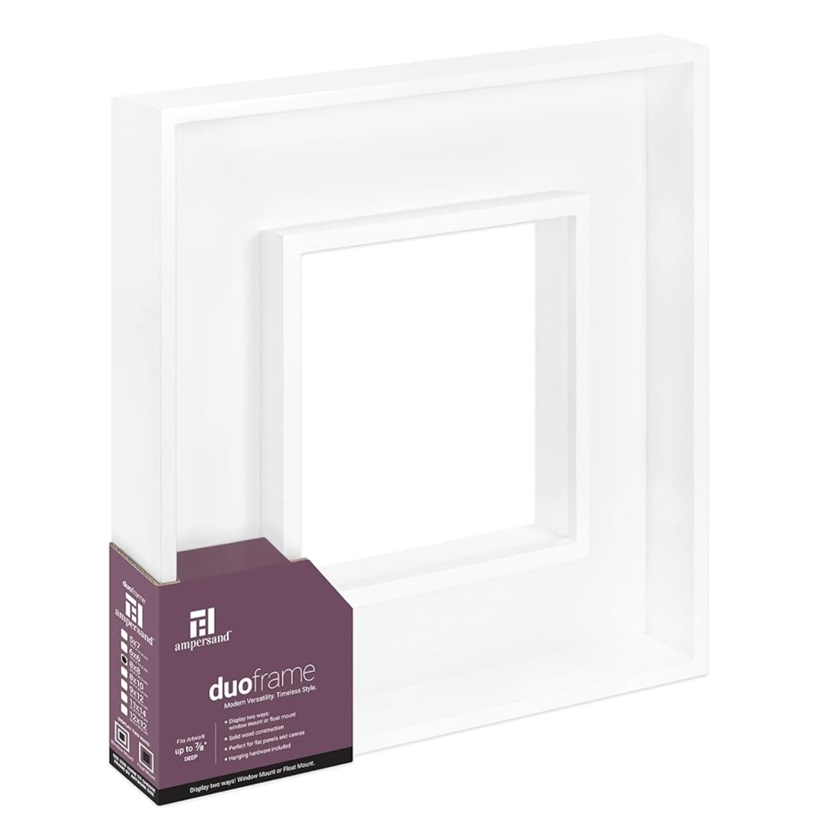 The Ampersand DuoFrame is a modern, versatile framing solution designed for cradled panels and canvases. Its unique design allows artwork to be mounted either recessed inside the inner frame or mounted on top of the inner frame to intentionally reveal the canvas or panel edges. Crafted from high-quality hardwood with a clean, contemporary finish, the DuoFrame adds depth and structure while giving artists flexibility in how their work is presented. Ideal for gallery display, professional exhibitions, or home installations, it offers both refinement and creative control.
