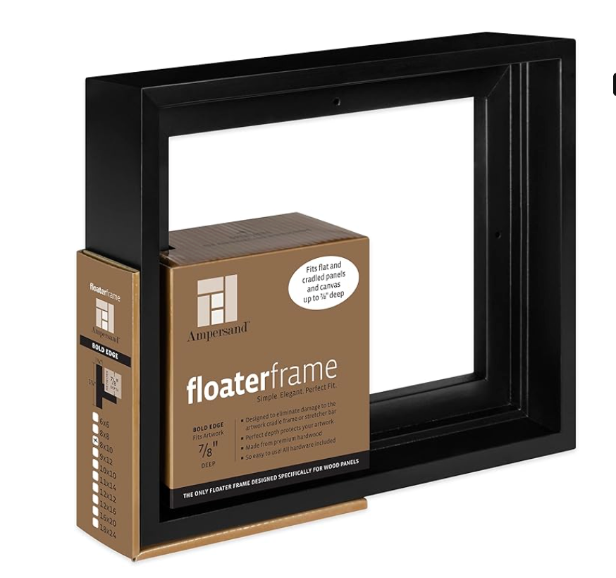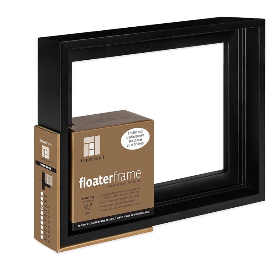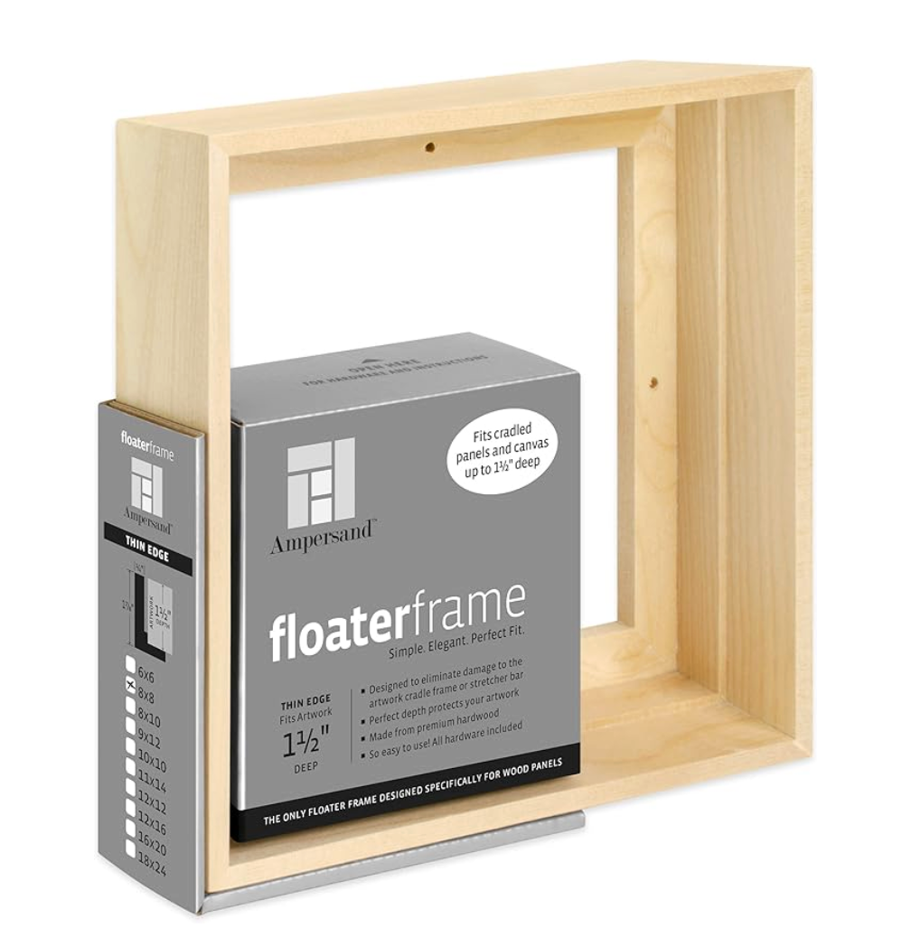 Ampersand Floater Frames are designed to give your artwork a clean, contemporary presentation that enhances without overwhelming. Crafted from high-quality hardwood, these frames create the illusion that your panel or canvas is “floating” within the frame, adding depth and visual impact. The pre-finished surfaces offer a sleek, professional look right out of the box, and each frame is precisely milled to fit Ampersand panels as well as standard-sized canvases. Easy to assemble and perfect for gallery display, these frames provide a refined finish that elevates any piece of art.