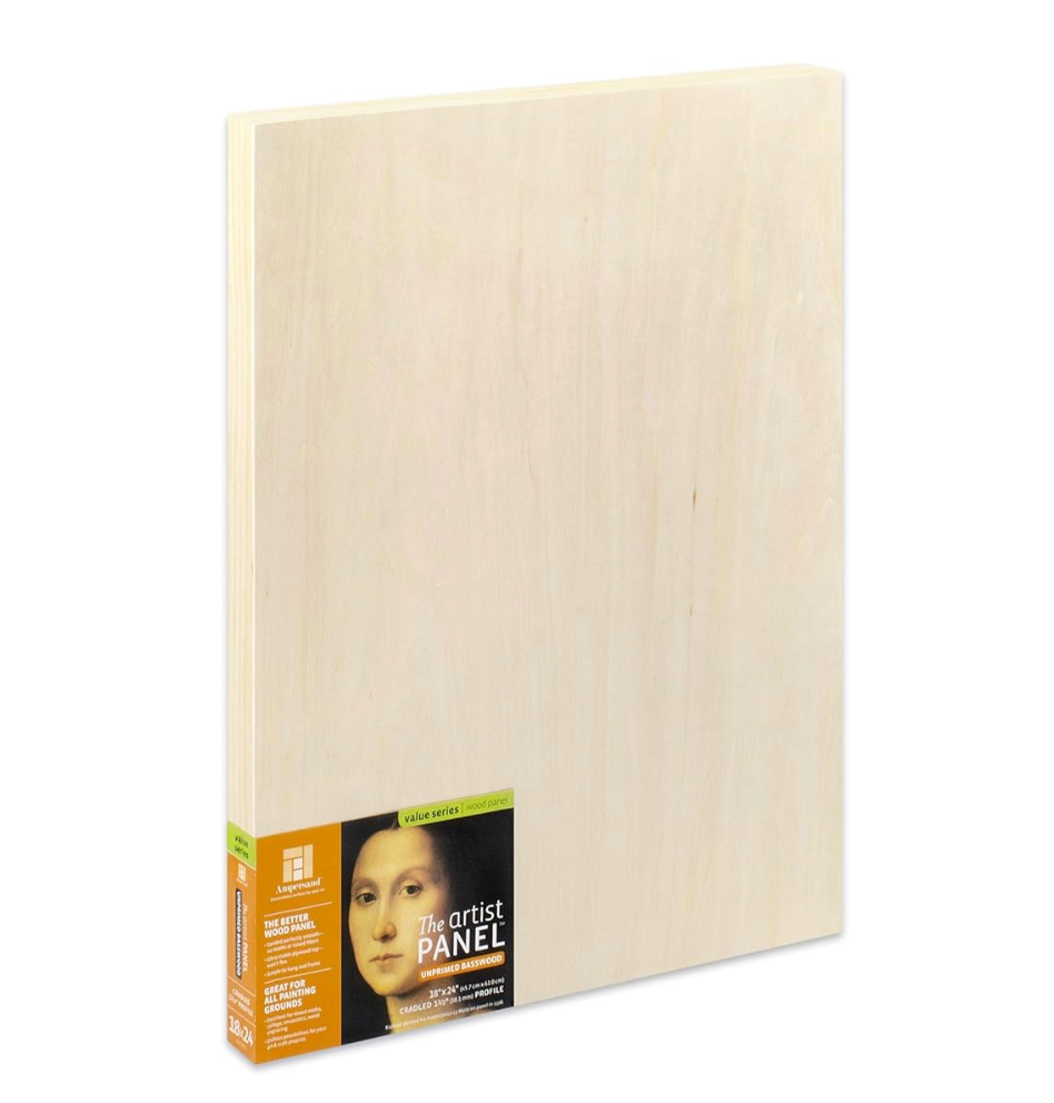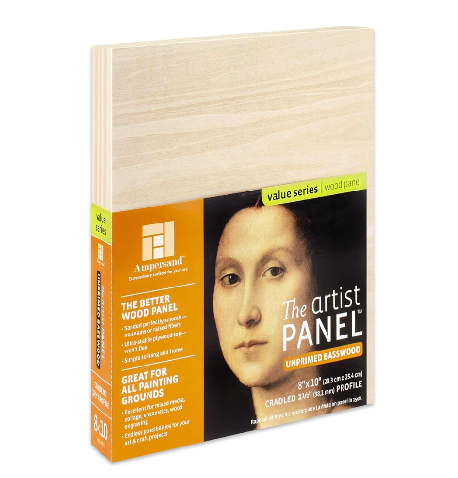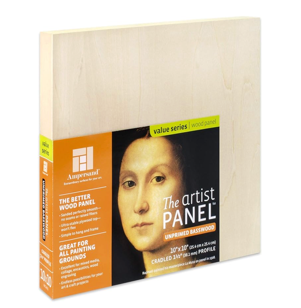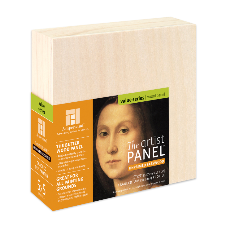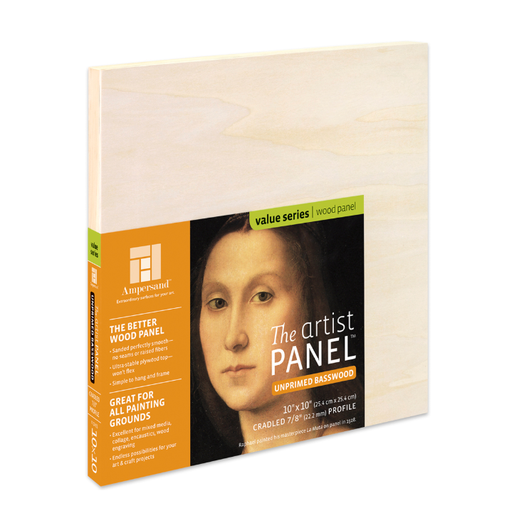 Ampersand Unprimed Basswood Artist Panels have a limited wood grain and are exquisitely smooth; free of seams, knots and raised fibers. These sturdy panels do not bend, give or flex, and have a have a smooth, uniform finish. The panels are thoroughly tested for warp-resistance and durability. Great for encaustic, collage, mixed media and more!