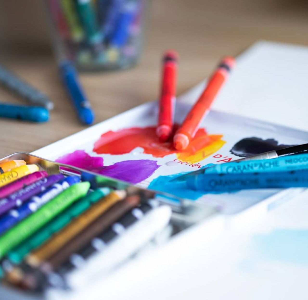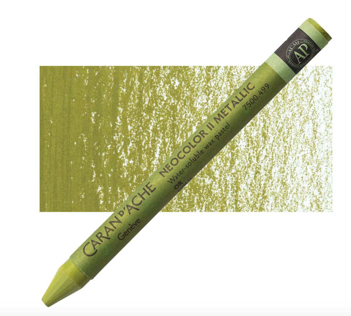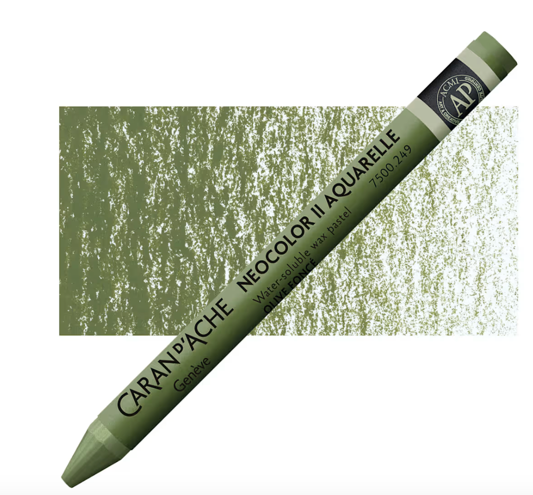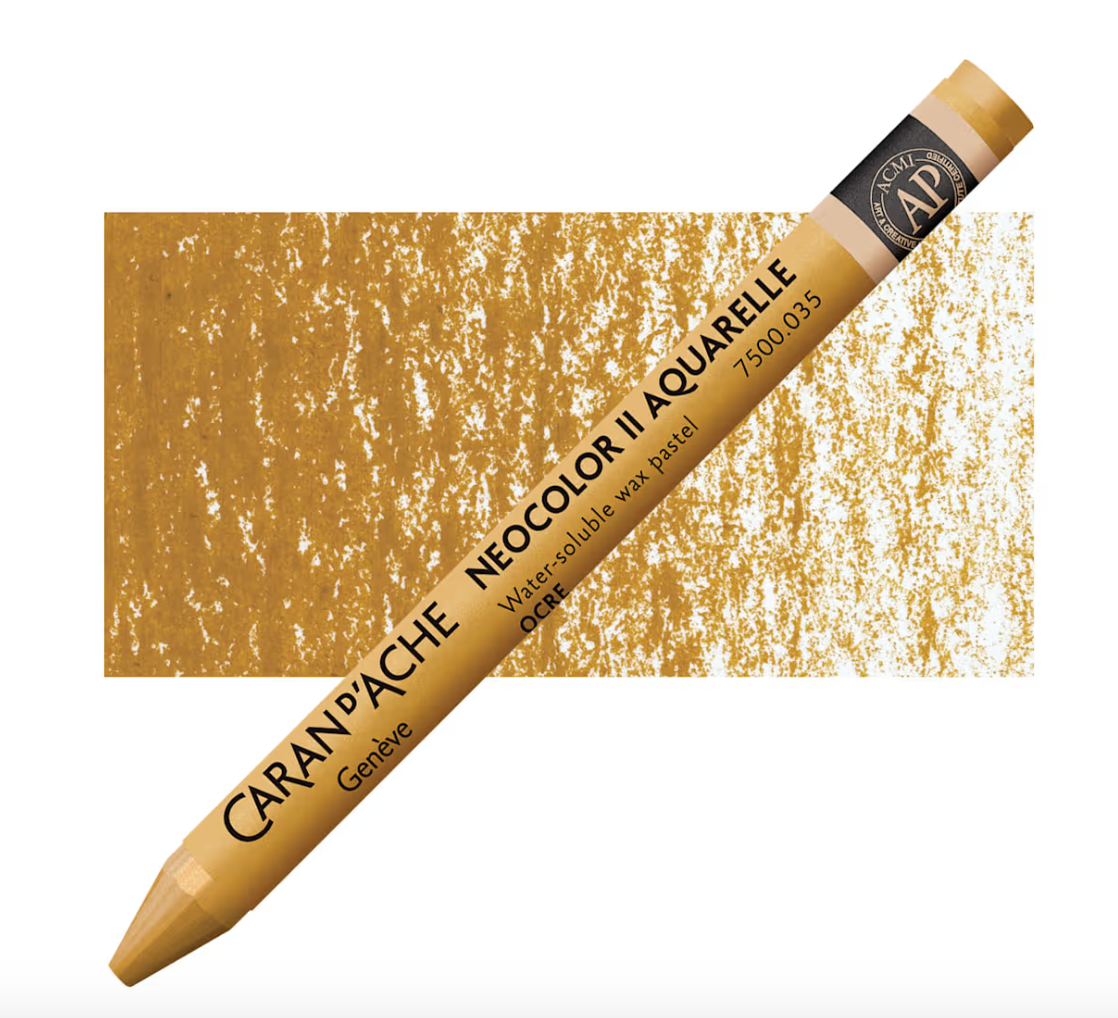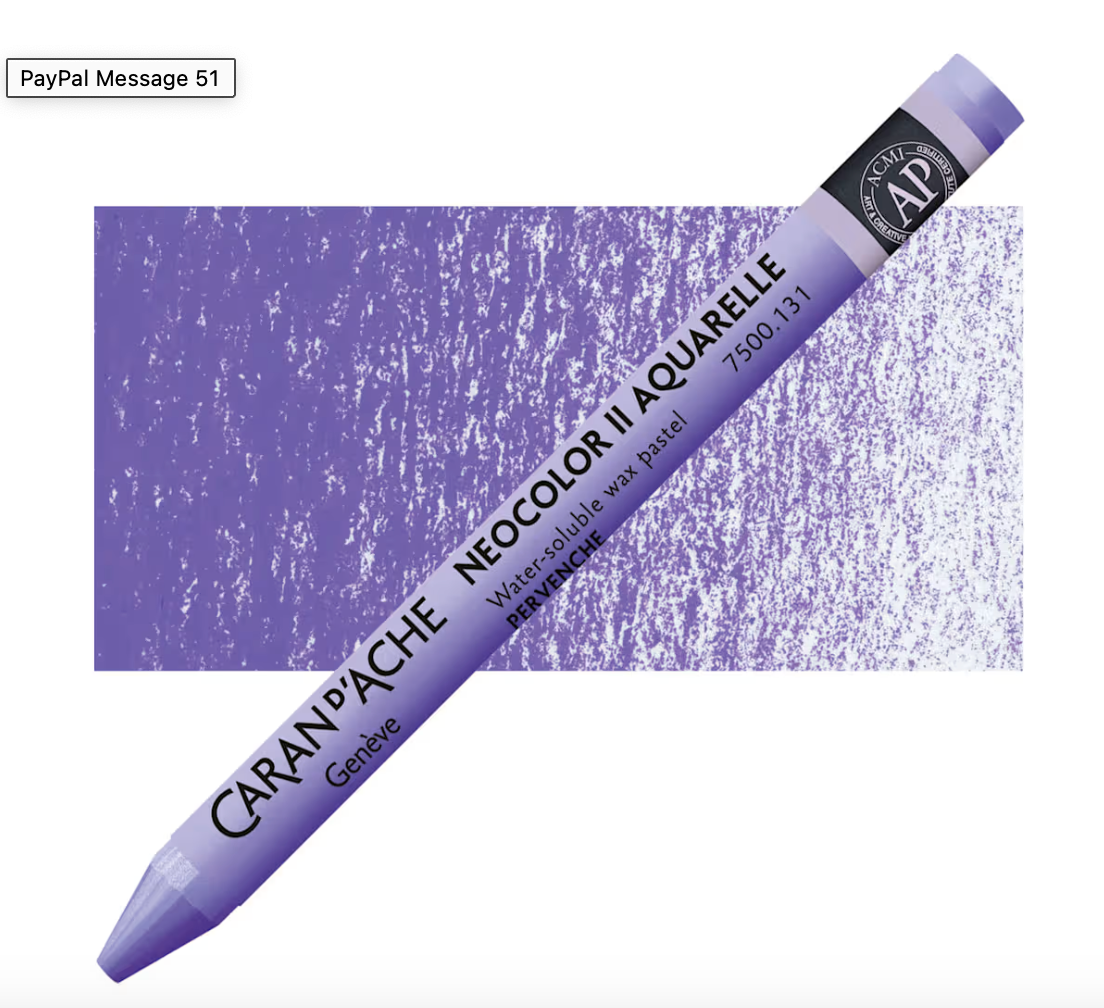 Caran d’Ache products are globally acknowledged for high quality pigments and excellent lightfastness. Caran d’Ache Neocolor II Aquarelle Artists’ Water-Soluble Wax Pastels are softer than colored pencils, creamier than children’s wax pastels, and tremendously responsive to a wet brush. The Neocolor II Wax Pastels allow you to combine wet and dry techniques in the same composition. Because of their strong pigmentation, light colors cov]er dark colors and vice-versa. This wonderful medium may be used alone or with a combination of other media!