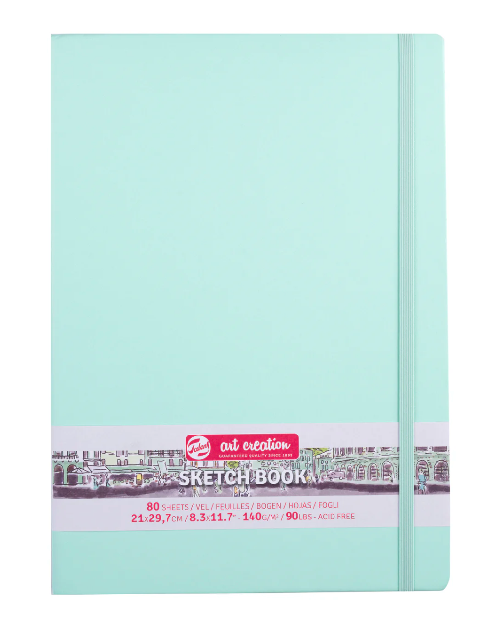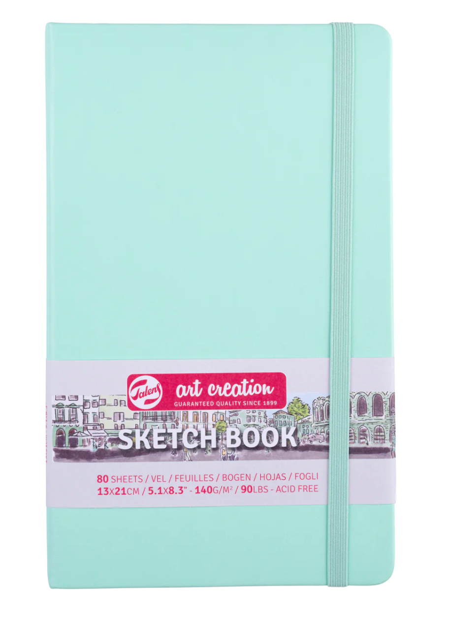 Sketch, journal, or create on-the-move with the Royal Talens Art Creation Sketchbook—a hard-cover companion made for artists of all levels. Each book has 80 pages of smooth, 140 gsm acid-free paper, safely bound in a stylish imitation leather cover with a secure elastic closure and ribbon marker to keep your place. Choose from a wide selection of sizes and vibrant cover colors. From pencil sketches to light washes of ink, this sketchbook gives you dependable performance with just the right balance of texture and weight.