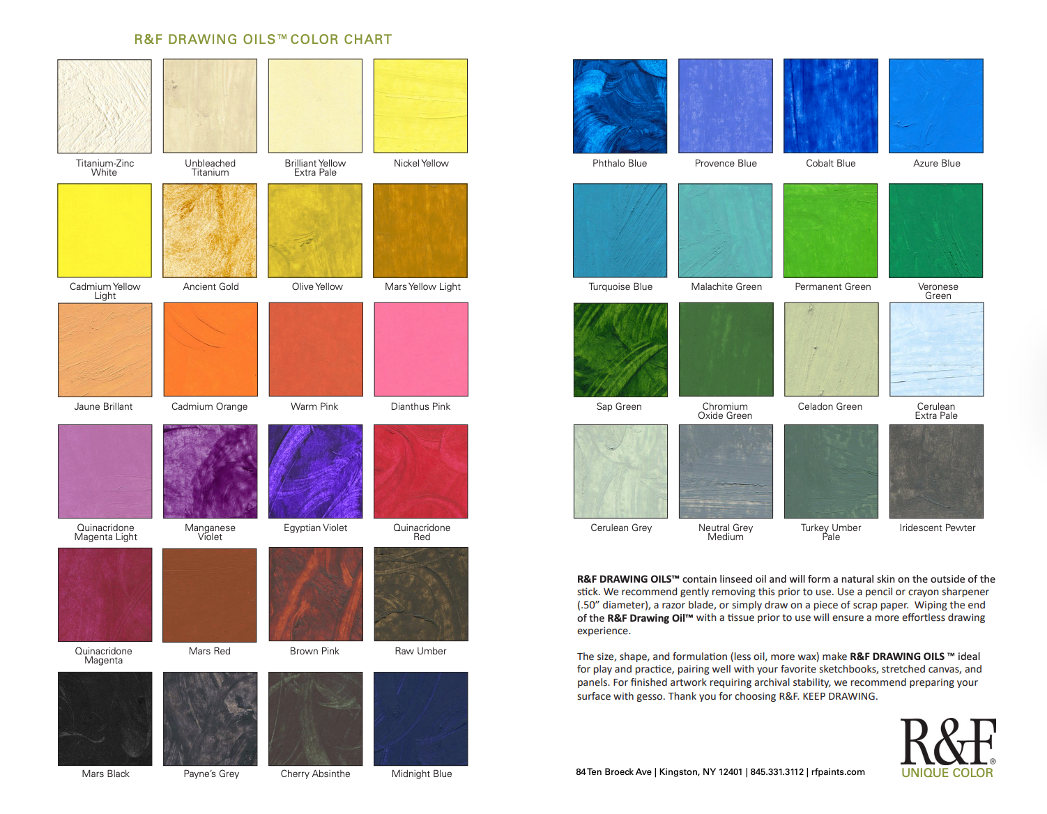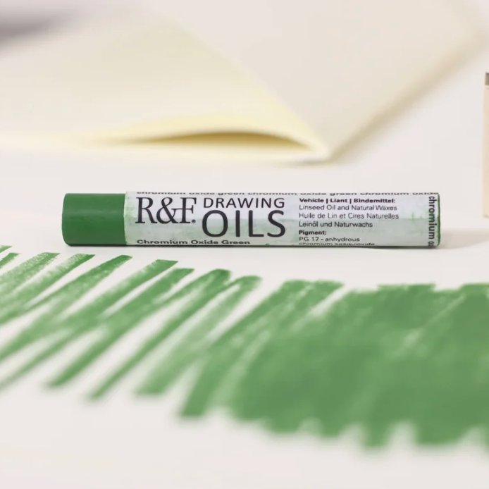 R&F Handmade Pigment Sticks are oil paint in solid, stick form, designed to be drawn, layered, and blended directly on the surface without brushes. Made from pure, finely ground pigments combined with linseed oil and natural waxes, they deliver the same richness, permanence, and drying properties as traditional tube oil paints. Unlike oil pastels, which remain soft and never fully dry, Pigment Sticks cure and harden over time, allowing for true oil painting techniques such as layering, glazing, scraping, and varnishing. They can be used on their own or alongside tube oils, offering a tactile, immediate way to paint while maintaining professional, archival results.