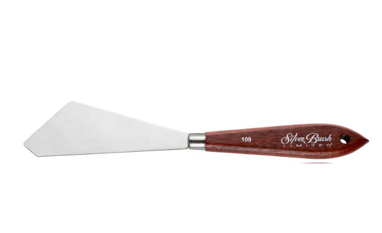 The Silver Brush Ltd palette knife #109 is the ultimate tool for texture and control. Its flexible, triangular carbon steel blade is perfect for impasto, mixing, and creating dynamic strokes. The ergonomic handle ensures comfort and precision. A versatile essential for any painter's studio.