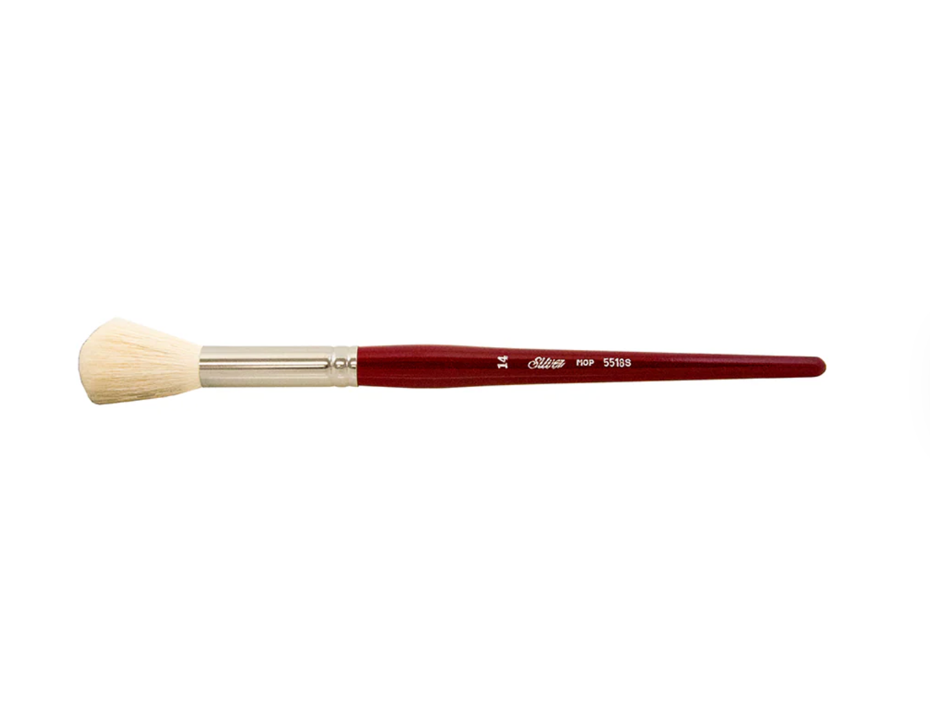 Ultra-soft white goat hair bristles are prefect for blending and softening color with oils or acrylics. They can also be used to create backgrounds and sky washes with watercolors.